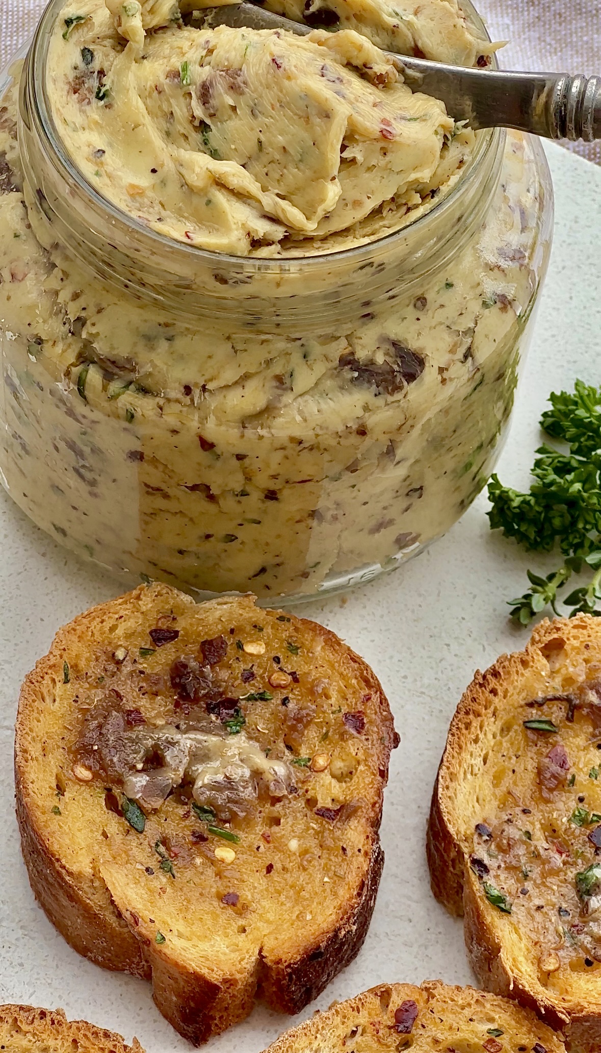 9. Serve on warm bread, melt over steak, toss into roasted veggies or use however you like, this butter makes everything better!
